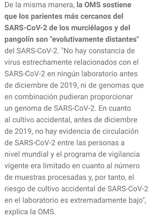 LA OMS CONCLUYE QUE EL VIRUS VIENE DE MURCIÉLAGOS.