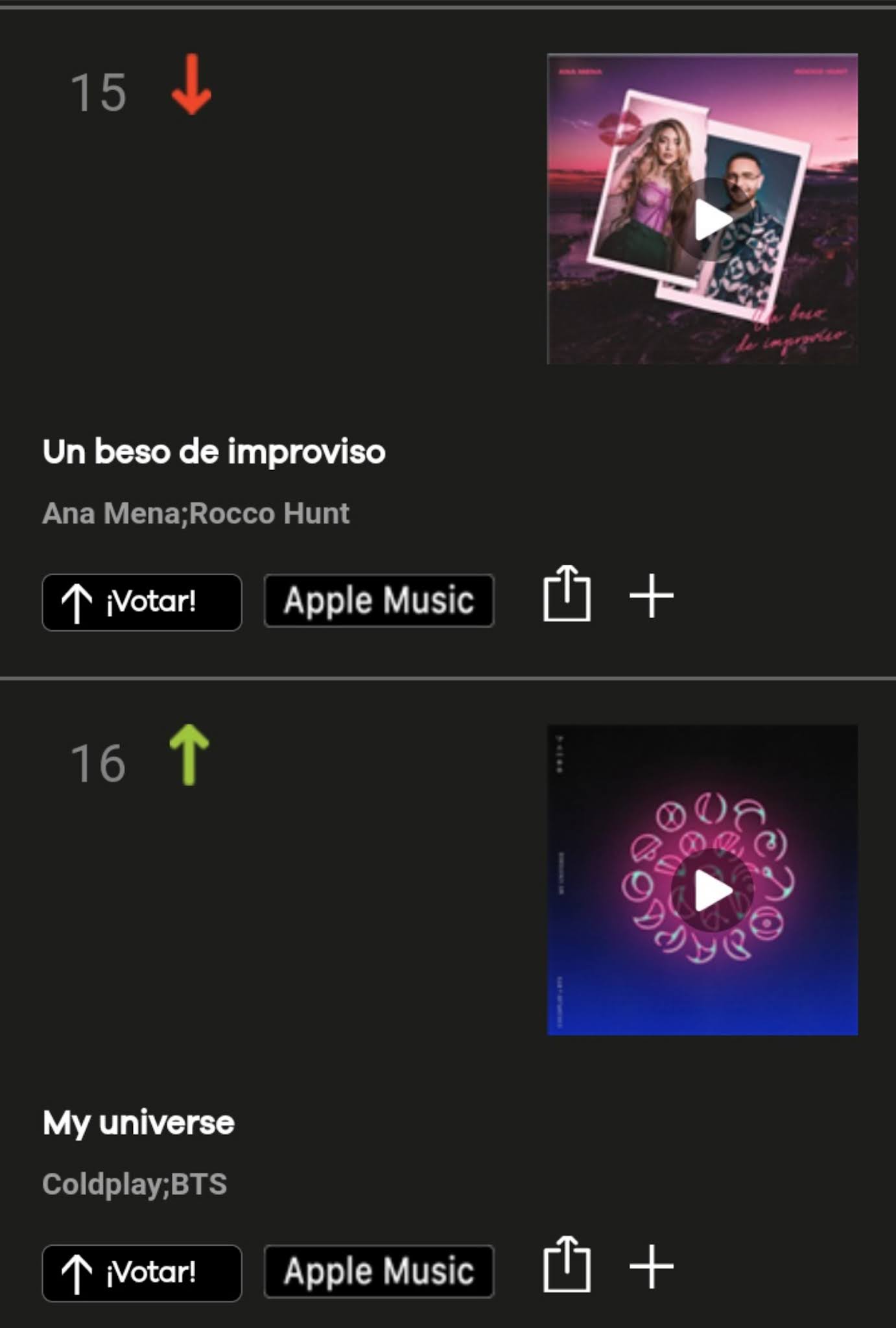 con los 5 primeros BAJANDO al quinto puesto "Shivers" de Ed Sheeran.