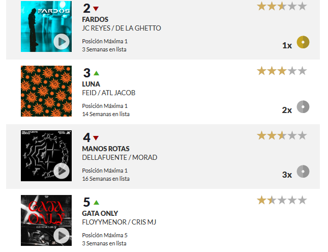 En el segundo puesto es para el anterior número 1 de la semana pasada JC REYES / DE LA GHETTO con su nuevo éxito “FARDOS”